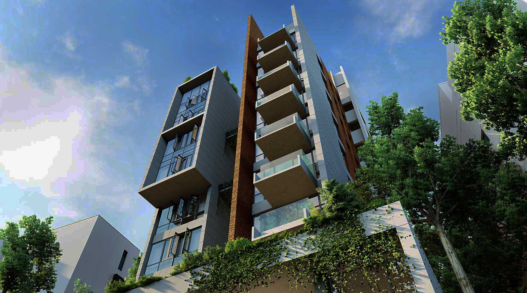 Description: Moondrop, is situated in the tree-lined diplomatic neighborhood of Baridhara Residential Area, stone through away from peaceful lake and park. Each floor is occupied by south facing luxurious 4-bedroom single unit 3850 sft apartments. Green ethos of the neighborhood will welcome you, when you access the building through splendidly curated green lobby at the ground floor with contemporary interior design.